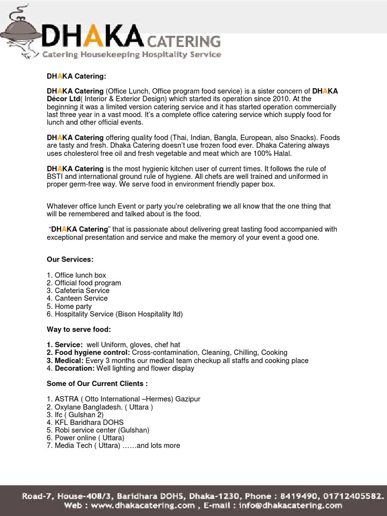 Dhaka Catering Company Profile With Example Menu Curry Foods