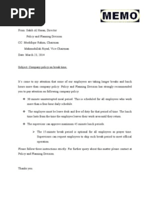 Memo How To Write A Memo On Break Time