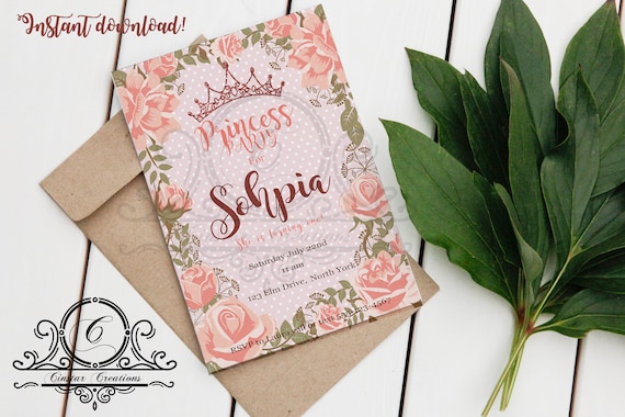 Princess Party Invite Birthday Party Invitation Template Editable Text Birthday Card Template Printable Greeting Card Birthday Invite