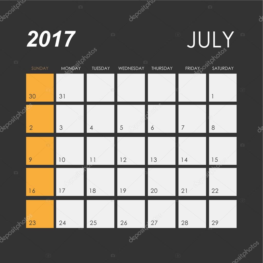 Calendar July 2017 Template Stock Vector C Esbeauda 109957738