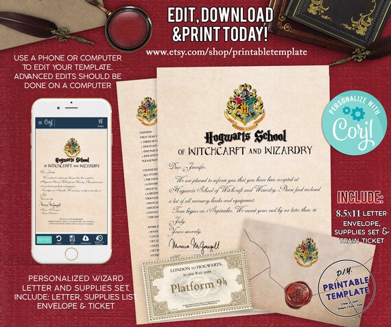 Editable Hogwarts Acceptance Letter Invitation Wizard Birthday Hogwarts School Wizards Personalized Acceptance Letter Hp Letterod1
