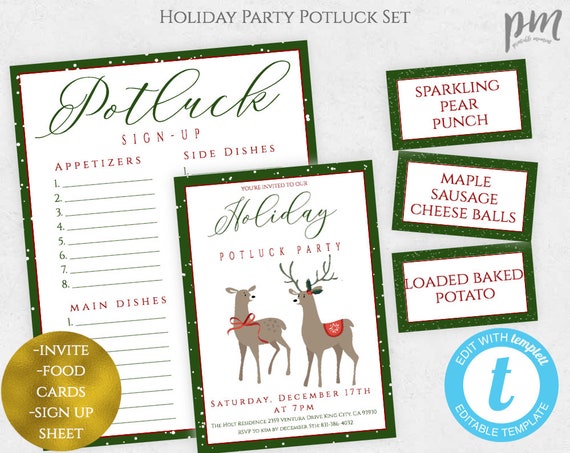 Holiday Potluck Party Invitation Potluck Party Invitation Work Party Holiday Party Template Set Christmas Party Invite Instant Download