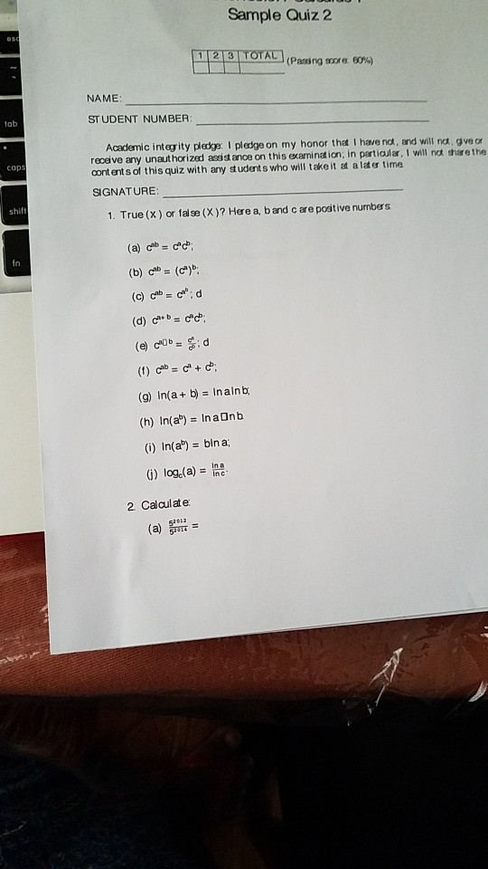 Solved Sample Quiz 2 Name Student Number Tab Academic In