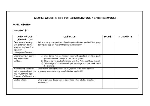 9 Interview Score Sheet Samples Pdf Word Excel Pages