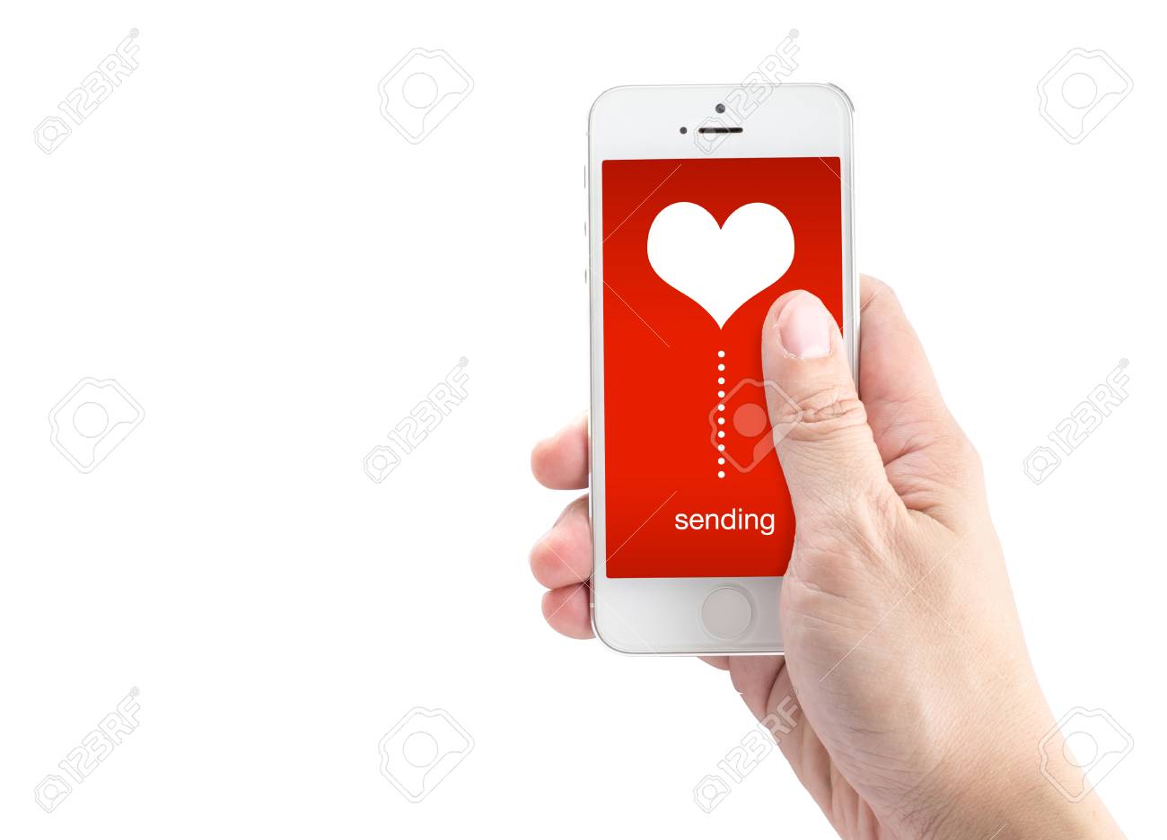 Hand Holding Smartphone With Sending Word And Heart Shape On