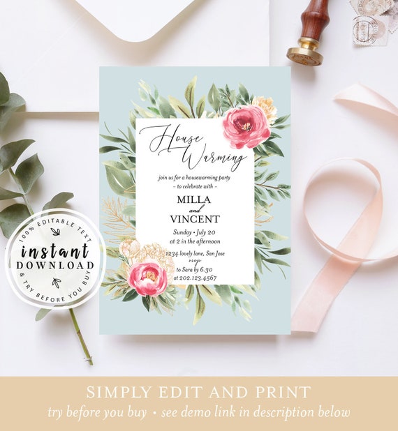 Floral Housewarming Party Invitation Housewarming Invitations Fully Customizable Printable Instant Download Editable Template Hw 012
