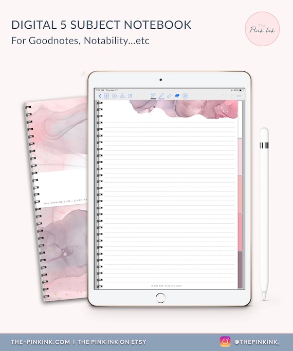 Digital Notebook 5 Subject Notebook Goodnotes Template Hyperlinks Index Page Goodnotes Covers Goodnotes Notebook Instant Download