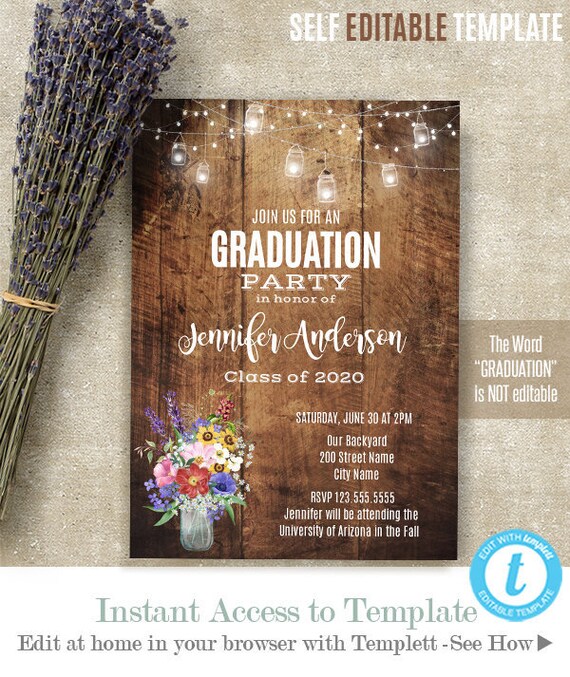 Graduation Party Invitation Printable Editable Template Rustic Prom Party Instant Download Edit With Templett A3131