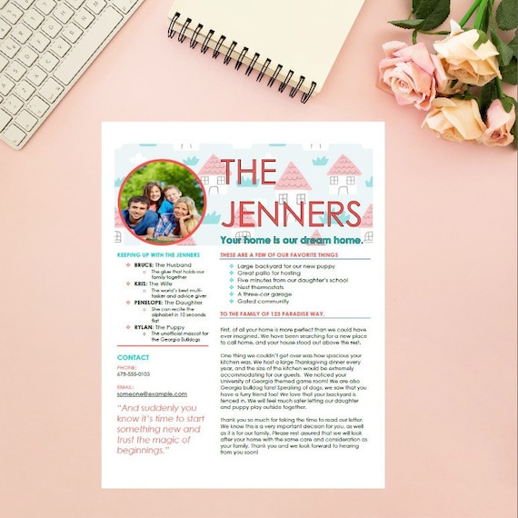 Buying A New Home House Offer Cover Letter Template Personalize Your Family Easy Editable Word Document Instant Download