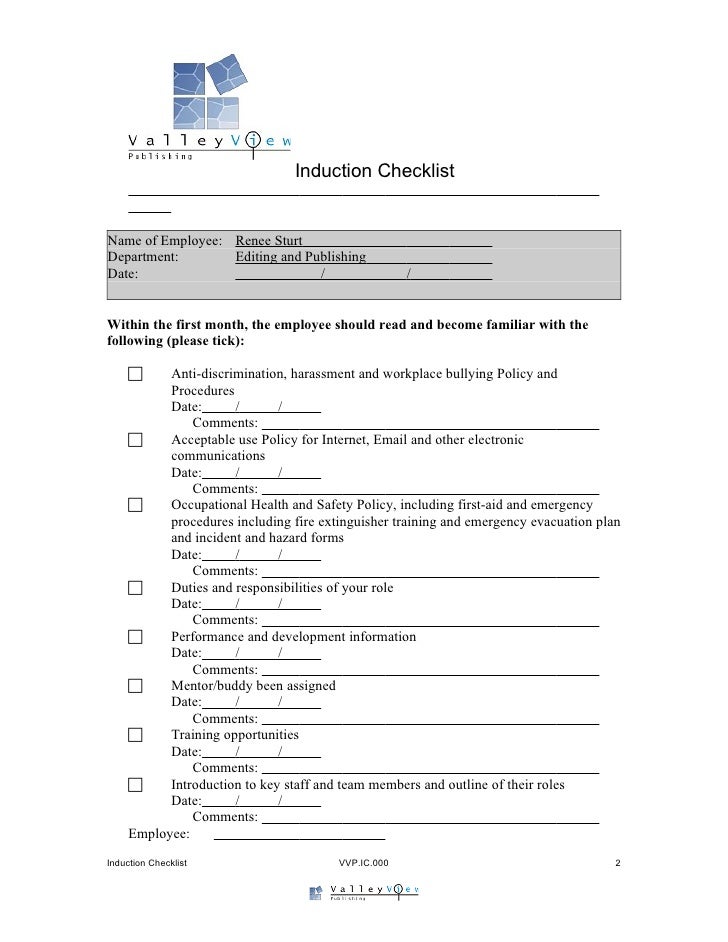 Induction Checklist Sample Edit Fill Sign Online Handypdf