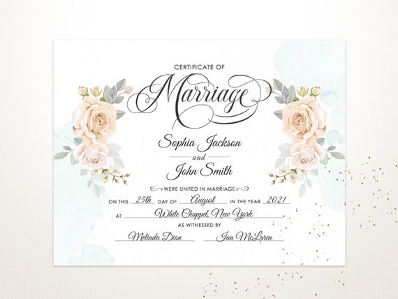 Elegant Wedding Certificate Printable Certificate Of Marriage Wedding Certificate Editable Template Wedding Gift Instant Download