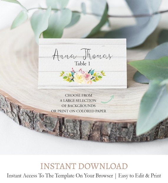 Floral Wedding Tent Card Watercolor Flowers Place Card Printable Editable Escort Cards Template Name Tent Card Instant Download Pdf F4