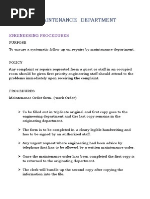 Sop For Maintenance Department Autosaved Housekeeping