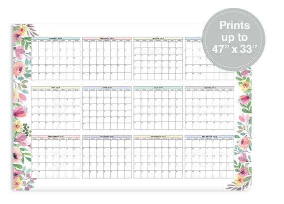 2019 Large Calendar Landscape 2019 Calendar At A Glance Calendar Monthly At A Glance 2019 Year Calendar 2019 Digital Calendar