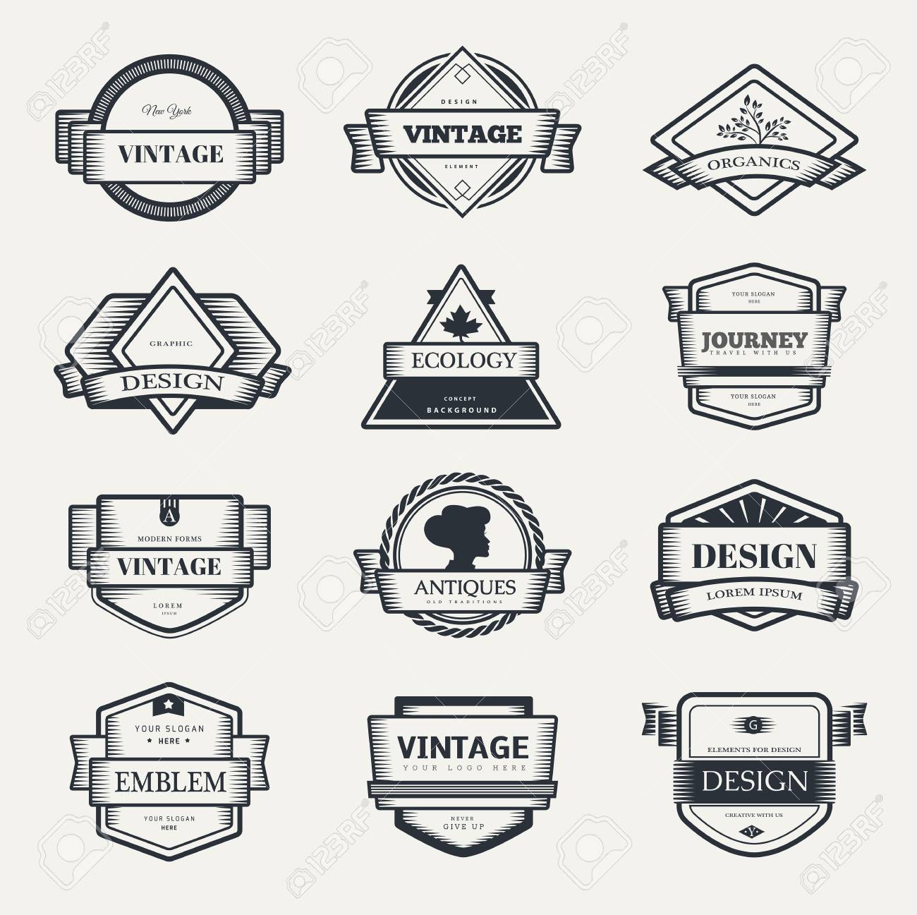 Retro Vintage Label Outline Emblem Set Design Elements Template