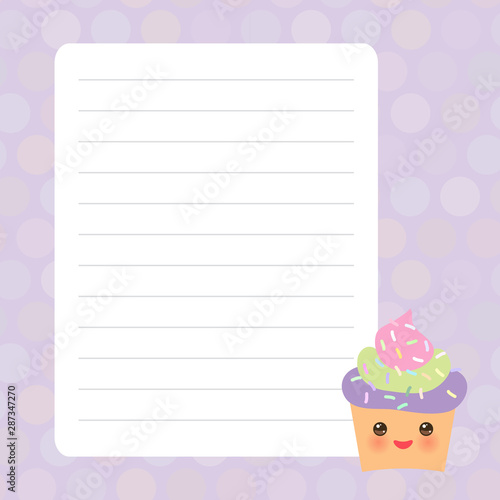 Card Design With Kawaii Cupcake Muffin With Purple Pastel