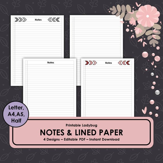 Notes Template Lined Page Printable Notes Printable Notebook Notepad Planner Inserts Bullet Journal Printable Planner Notes Template