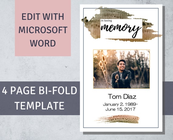 Watercolor Brown Funeral Program Template For A Man Memorial Service Celebration Of Life Order Of Service Masculine Funeral Program Template