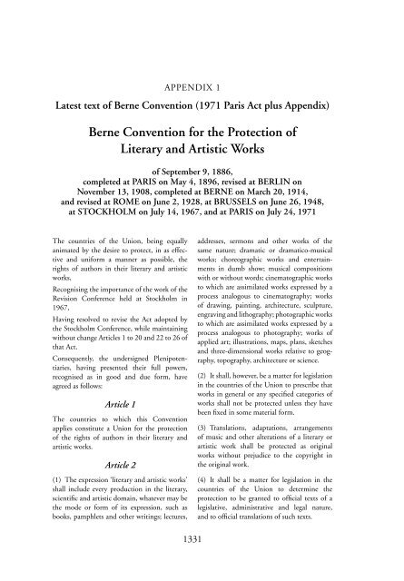 Berne Convention For The Protection Of Literary And Artistic