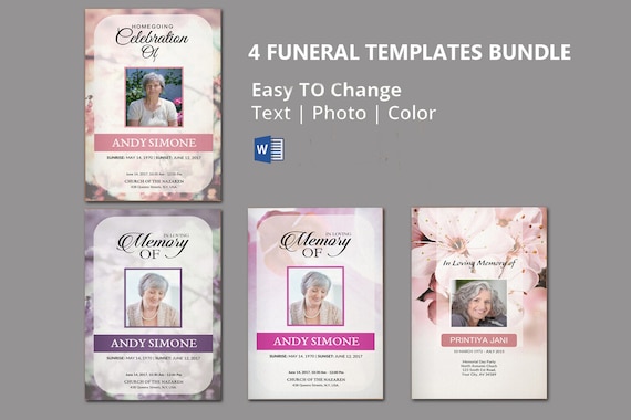 Funeral Program Template 4 Funeral Bundle Obituary Template Editable With Microsoft Word Instant Download Ef125