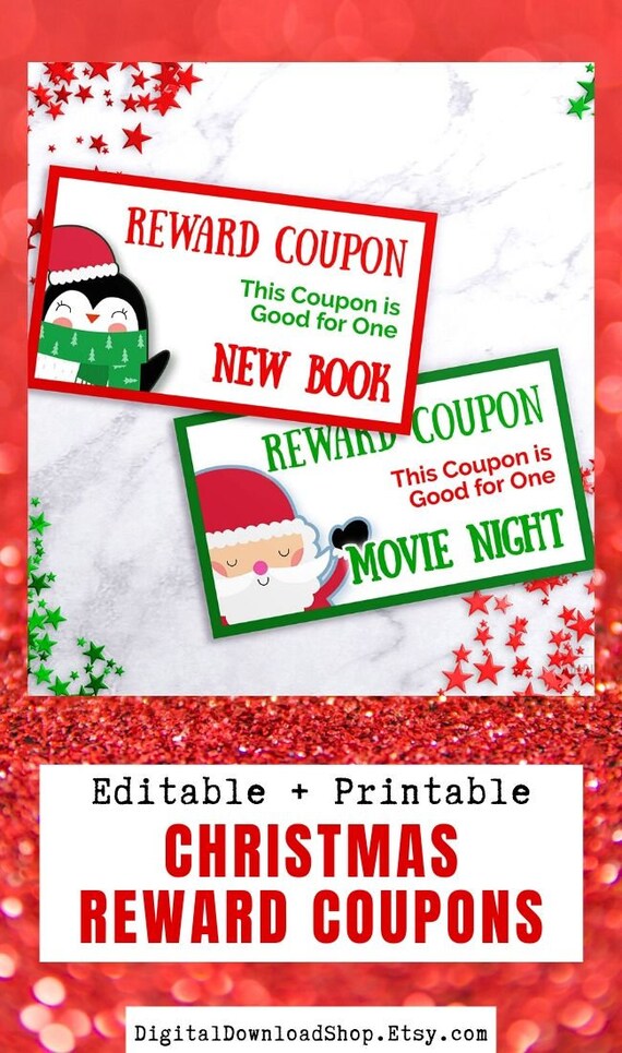 Christmas Kids Coupon Template Printable Reward Coupons For Kids Editable Holiday Coupons Christmas Coupons Book Custom Coupon Book