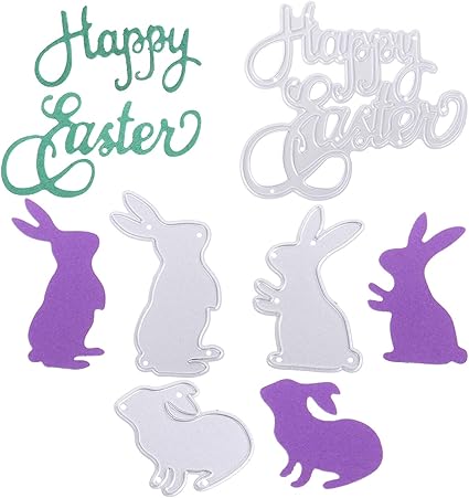 Aopoo Happy Easter Letter Cutting Dies And Bunny Rabbit Embossing Stencil Metal Template For Easter Party Diy Craft Home Decor 4 Pieces