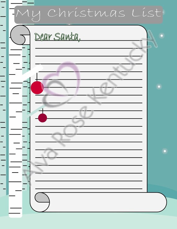 Instant Download Letter To Santa Christmas List Template Santa Clause Letter Letter To Santa Template Digital File