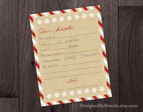 Rustic Letter To Santa Template Printable Instant Download Diy Children S Letter With Wish List Fun Vintage Candy Cane Striped Border