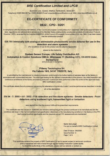 Ec Certificate Of Conformity 0832 Cpd 0201 Notifier