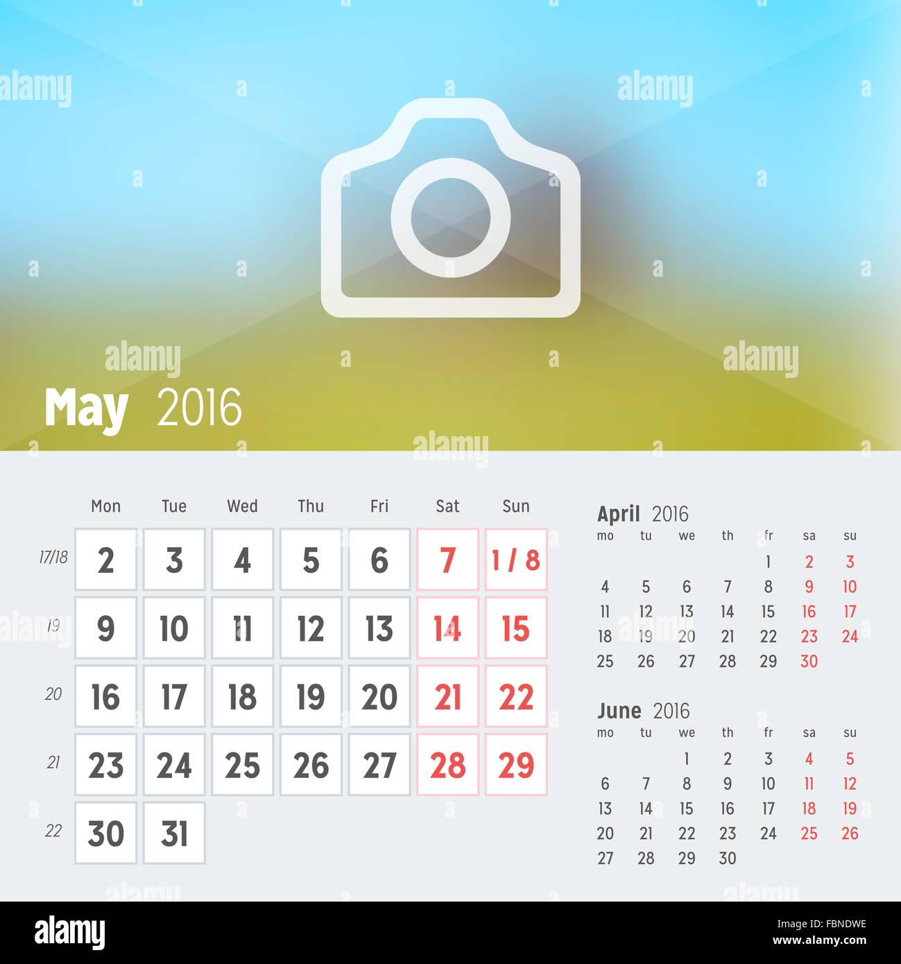 May 2016 Monthly Calendar Template Vector Illustration