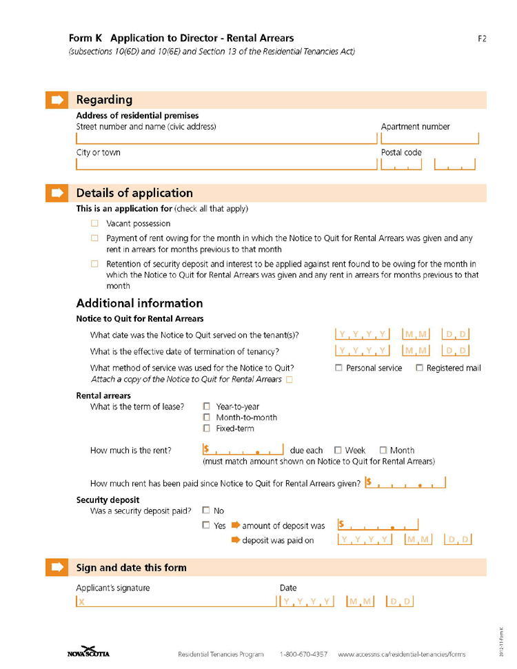 This nova scotia form is the next step for a landlord to breach a lease for rent past due. This form is authorized by residential tenancies act rsns. A lease agreement is usually a legal contract which sets out the rules landlords and tenants agree to follow in their rental relationship.