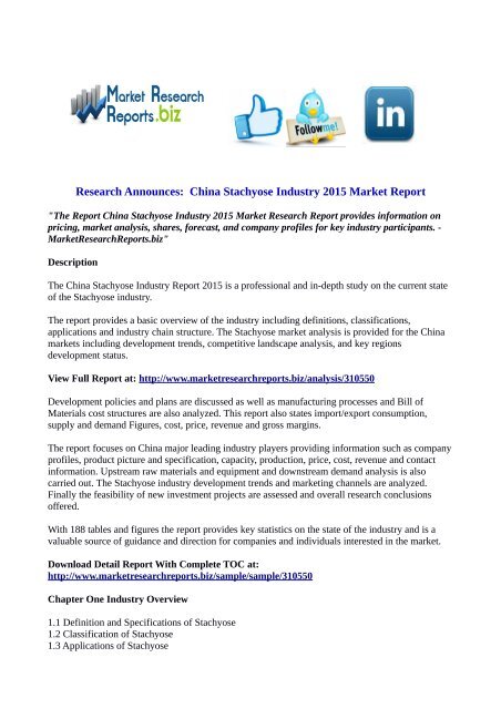 China Stachyose Industry 2015 Market Report Pdf