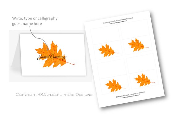 Digital Template Brown Oak Leaf Place Cards Tent Style 2x3 5 Inches Pdf Format Weddings Instant Download