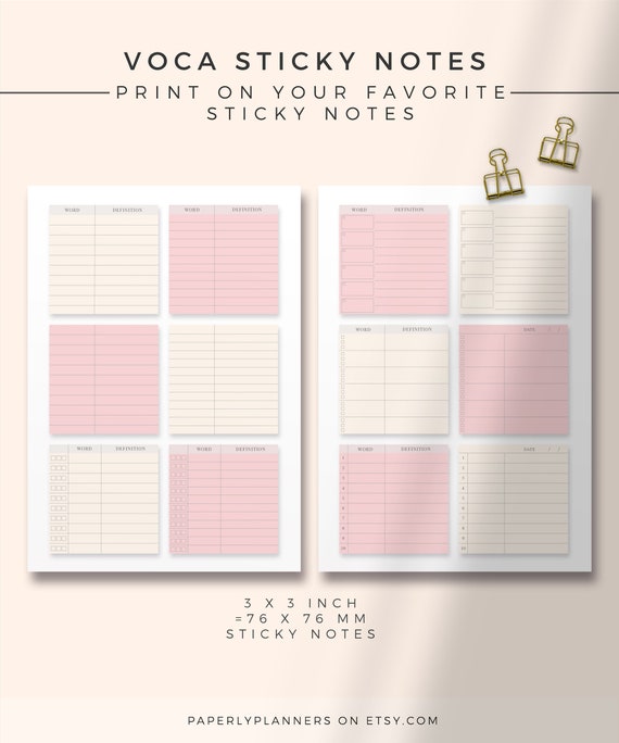 Voca Sticky Notes Printable Sticky Notes Template Word Book Template Vocabulary Note Printable Sticky Notes Language Study Notebook