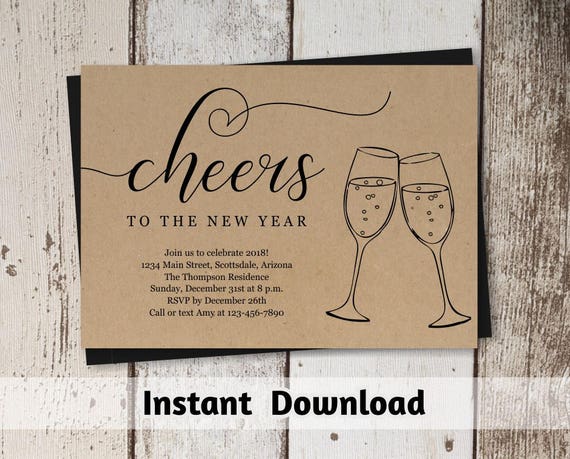 Printable New Years Eve Party Invitation Template Nye 2020 Celebration Card Kraft Paper Card Stock Digital File Instant Download Pdf