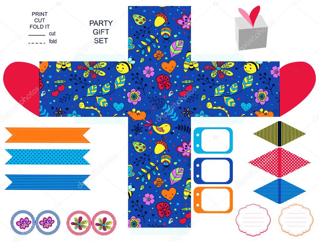 Cottage Chic Party Set With Gift Box Template Stock Vector