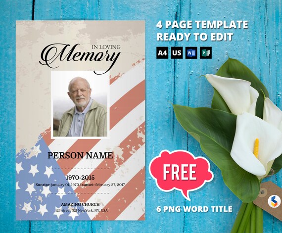 Retro Military Army Funeral Program Template Obituary Program Memorial Program Template Microsoft Word Publisher Template