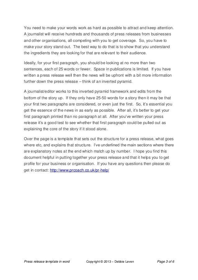 Press release template may 22 2019 khan word 0 press release template has been added here successfully to guide our valued users and readers about press release writing. This press release template is created using microsoft word 2013 so that everyone can easily use it and also get benefit from latest features of ms word 2013. Standard press release template this press release template includes space to accommodate all the necessary aspects of a standard business press release.