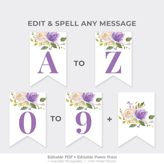 Purple Floral Party Banner Printable Editable Bridal Shower Pennant Custom Rustic Party Banner Template Instant Download Ppbs29