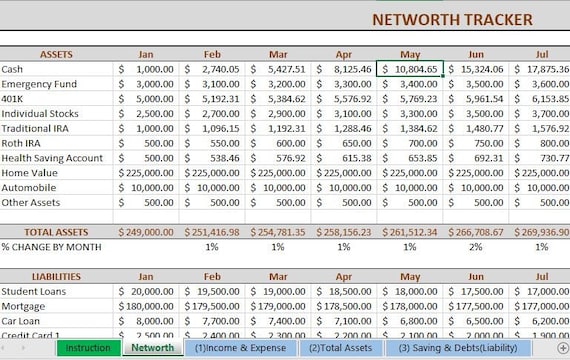 Personal Finance Networth And Income Expenses Monthly Tracker Excel Spreadsheet Template