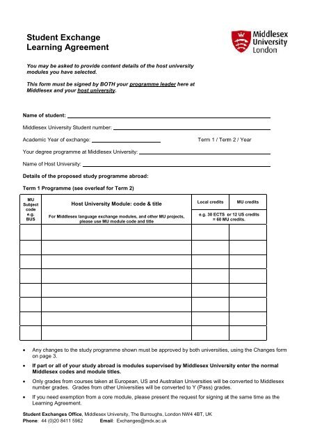 Learning Agreement Unihub Middlesex University