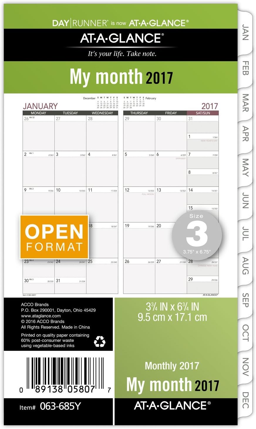 Day Runner Monthly Planner Refill 2017 Open Format 3 3 4 X 6 3 4 Size 3 063 685y