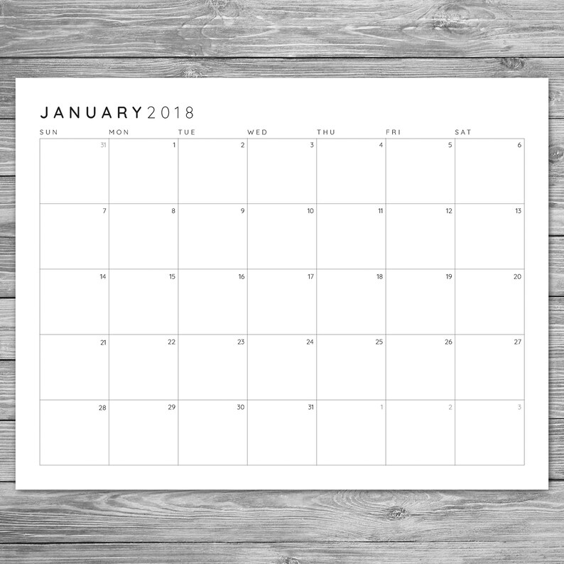 2017 2018 Printable Minimalist Monthly Grid Calendar Desk Calendar Wall Calendar Instant Download Planner Template A4 8 5 X 11