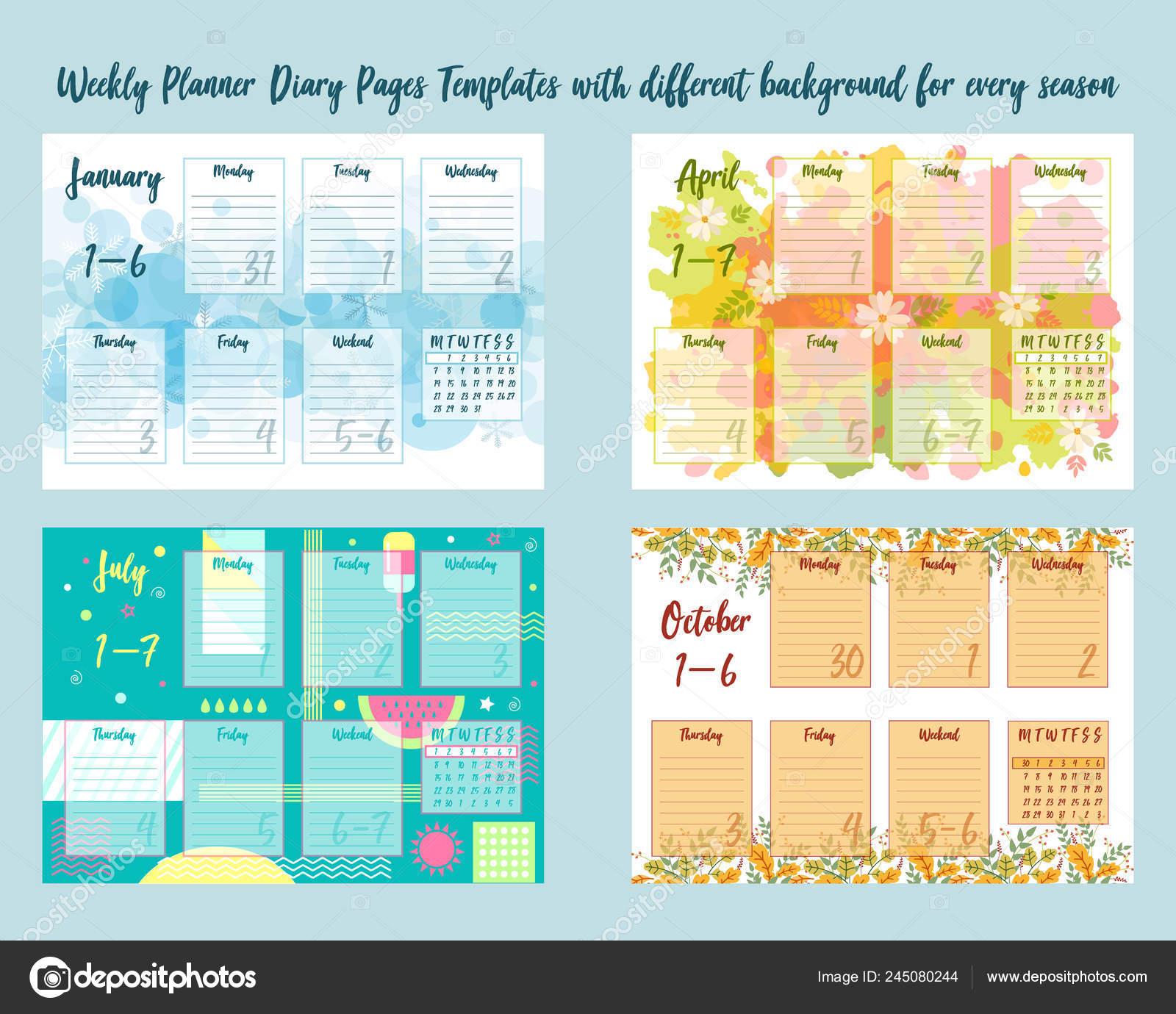 Weekly Planner Diary With Abstract Winter Spring Summer