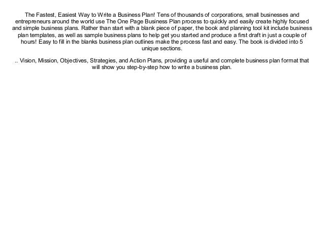 1 Page Business Plan Template One Page Business Plan Example Pdf