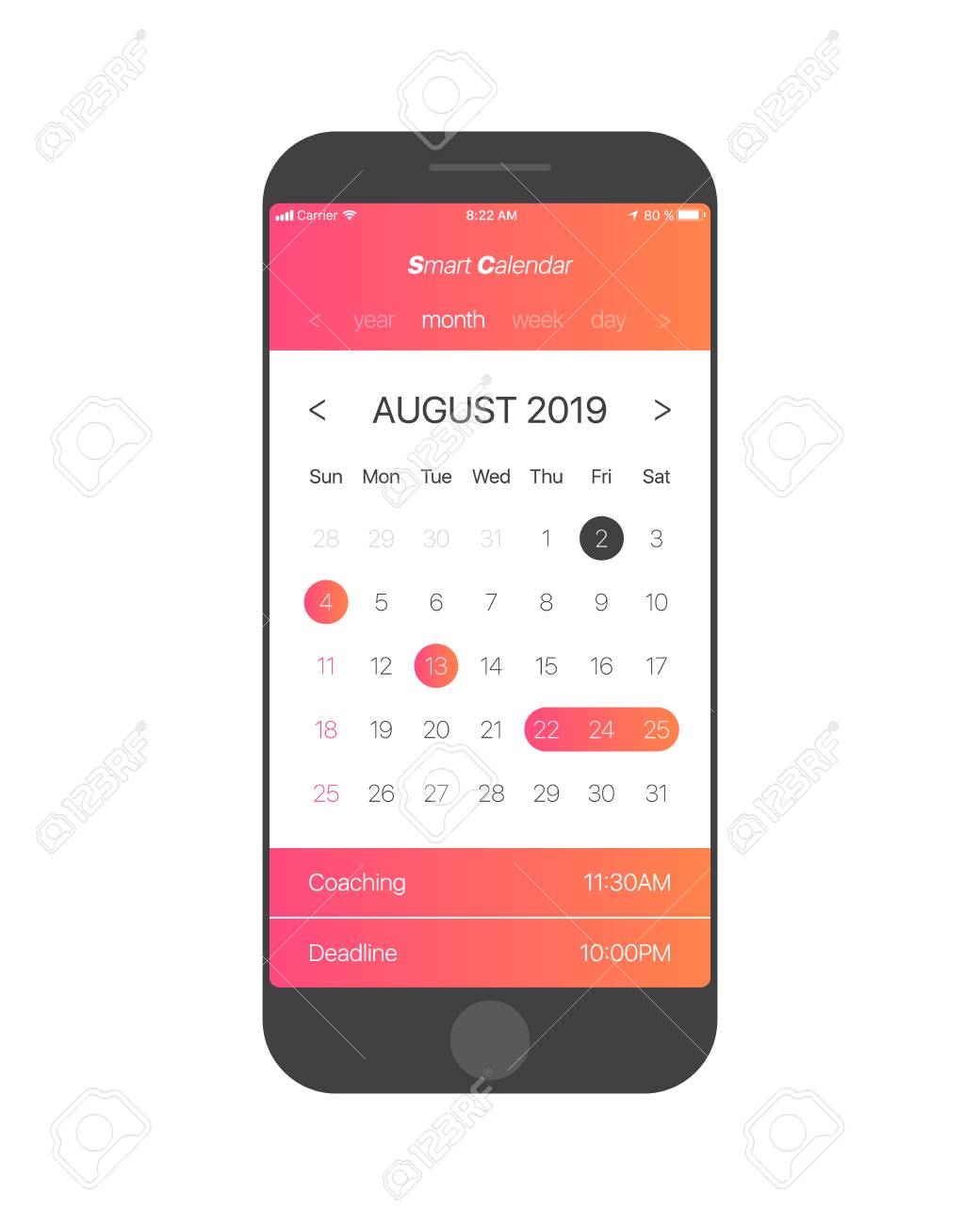Smart Calendar App Concept August 2019 Page With To Do List And