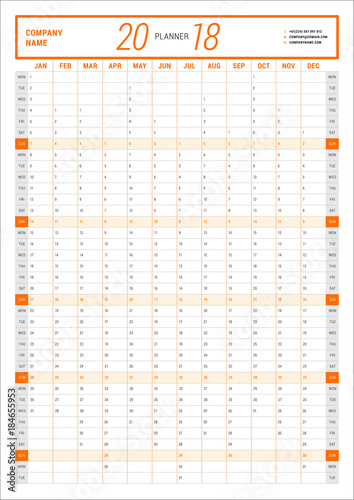 Yearly Wall Calendar Planner Template For 2018 Year Vector